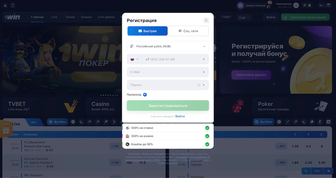 Для начала регистрации откройте официальный сайт 1вин и нажмите соответствующую кнопку. Если у вас возникли проблемы с доступом, обратитесь в службу поддержки — вам предоставят актуальную ссылку на рабочее зеркало.
